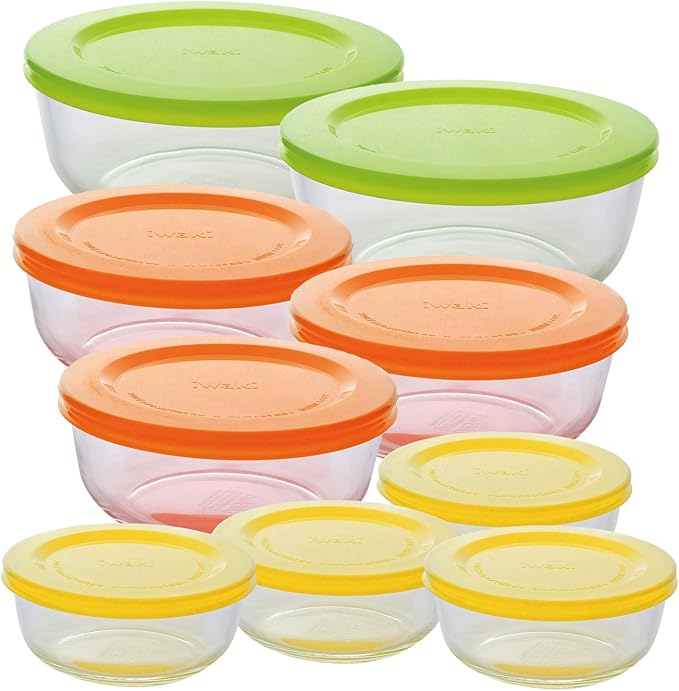 iwaki イワキ 耐熱ガラス 保存容器 パックぼうる 9点セット カラフル 180ml・400ml・800ml 大2・中3・小4組 ガラス レンジ可・オーブン可 SK3450-9