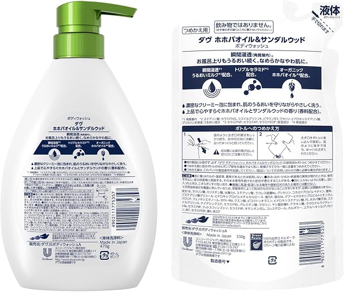 Dove(ダヴ) ボディソープ ホホバオイル&サンダルウッド (ボディウォッシュ) 本体+詰め替え用 470g+330g 2個