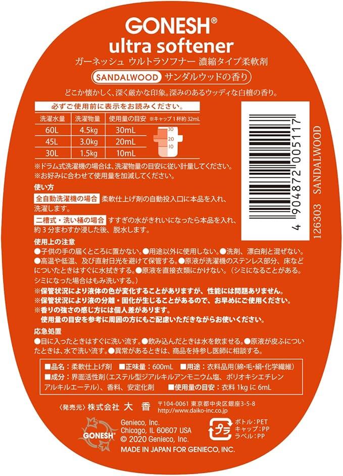 GONESH(ガーネッシュ)ウルトラソフナー(柔軟剤)サンダルウッド(深みのある白檀の香り)600ml