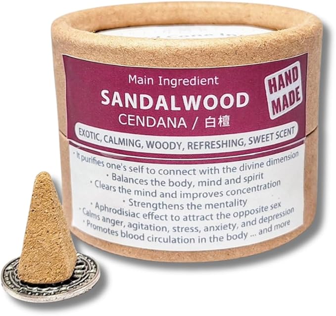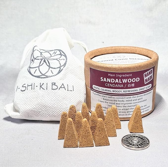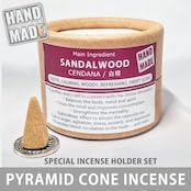 お香 天然 ピラミッドコーン サンダルウッド(白檀) 12個入 専用香立付|完全天然100% ハンドメイド|バリ島発 発酵水インセンス|瞑想・空間浄化用