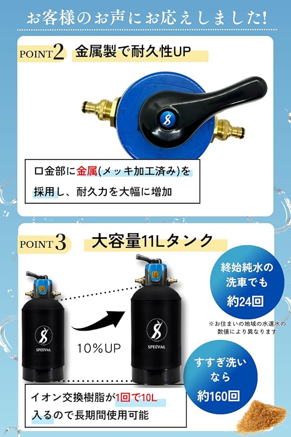 SPEEVAL 純水器 洗車用【切替ヘッド】11Lタンク FRP製耐圧タンク1.0MPa タンクカバー 2mホース TDSメーター 付属 イオン交換樹脂充填済み