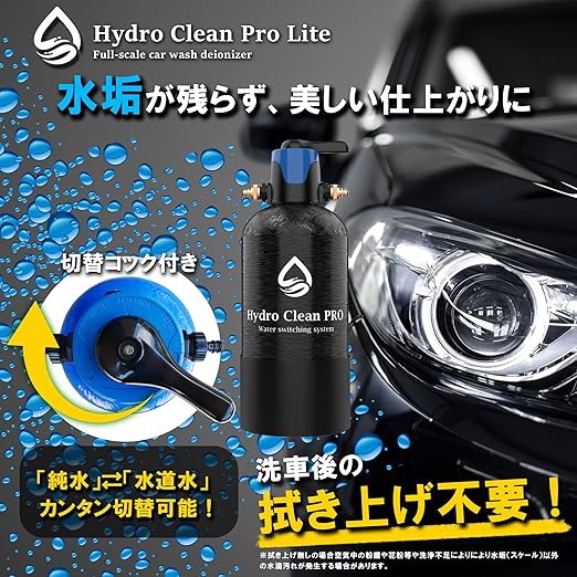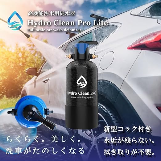 HydroCleanPRO LITE 洗車用 純水器 スターターセット モード切替バルブ搭載 業務用イオン交換樹脂10L付き 内部洗浄機能 FRP製耐圧13.8Lタンク TDSメーター 水垢 水シミ イオンデポジット対策