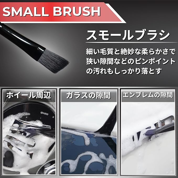 【洗車をグレードアップ】スポンジでは落としきれないホイールやエンブレム、ヘッドライトの隙間、グリルなどの細かい汚れをしっかり落としていつもの洗車からグレードアップ!