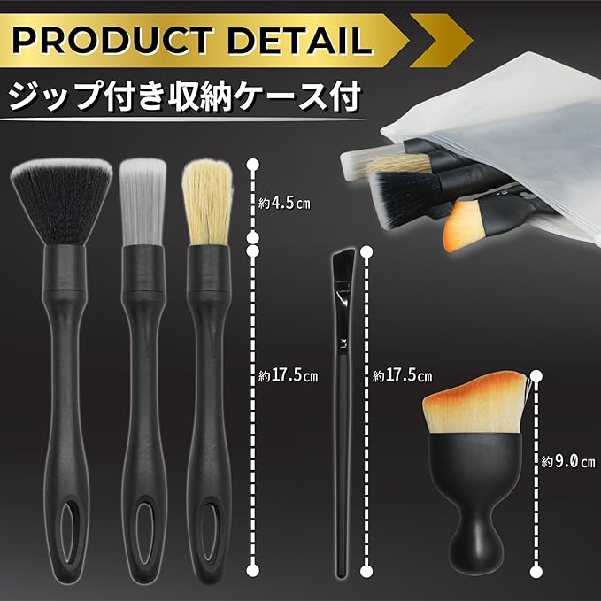 【収納袋付5本セット】洗車ブラシ ボディ用 ホイール用 筆 隙間 タイヤブラシ ディテールブラシ ホイールブラシ 洗車 洗車グッズ 洗車用品 洗車用クリーナー
