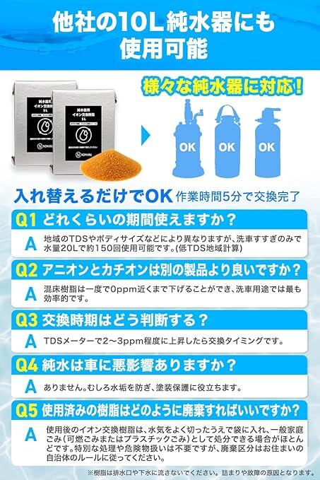 純水器 イオン交換樹脂 10L (5L 2) 交換用 洗車 アクアリウム 観賞魚 加湿器 スチーム機器