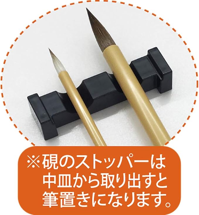 硯のストッパーは中皿から取り出すと筆置きになります。