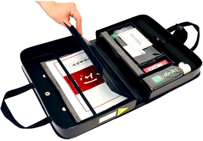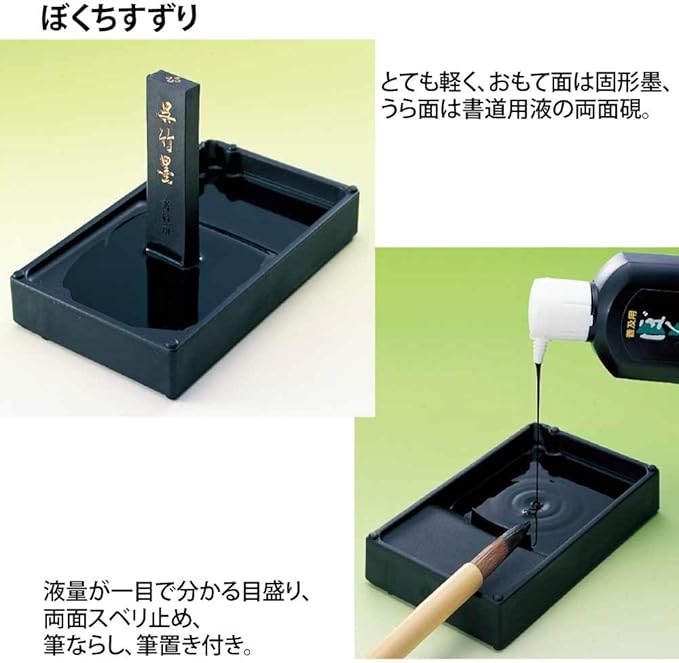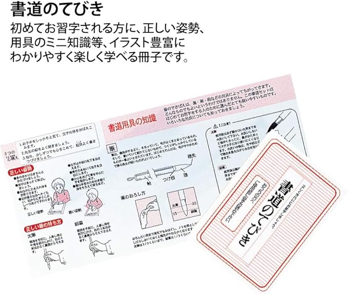 【セット内容】固形墨、書道液(180ml)、筆(太筆・細筆)、すずり(5.3平)、半紙(10枚入)、筆巻、文鎮、下敷、水差し、中皿(蓋なし)、書道バッグ、てびき、名前シール