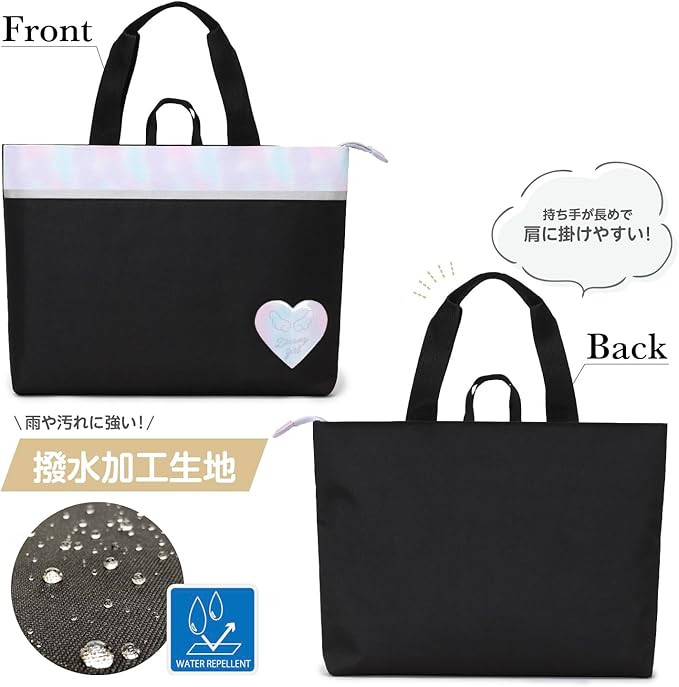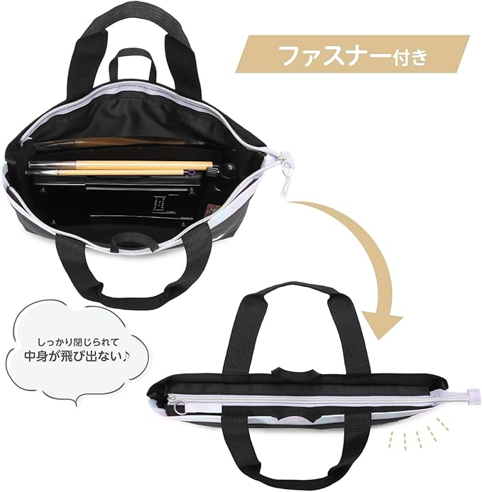 A4サイズが入ってレッスンバッグとしても使えるトートタイプ。机などのフックに掛けられるループ付き。