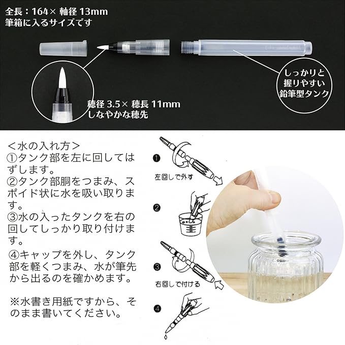 付属の水筆は100%ナイロン毛を使用している為、書き味もバツグンで画用筆にも最適