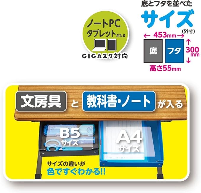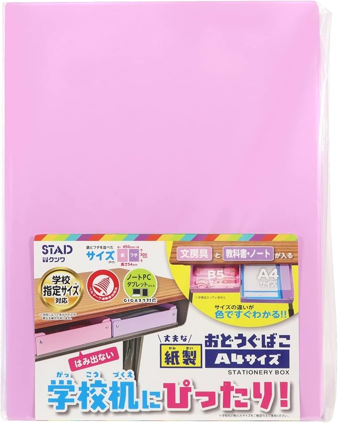 学校机にぴったり入る紙製お道具箱! 文房具や教科書、タブレットなどを収納できる! 側面にくぼみがあるので、指をかけやすく引き出しやすい。無地仕様なのと、紙製で軽く丈夫なので新入学にオススメ!