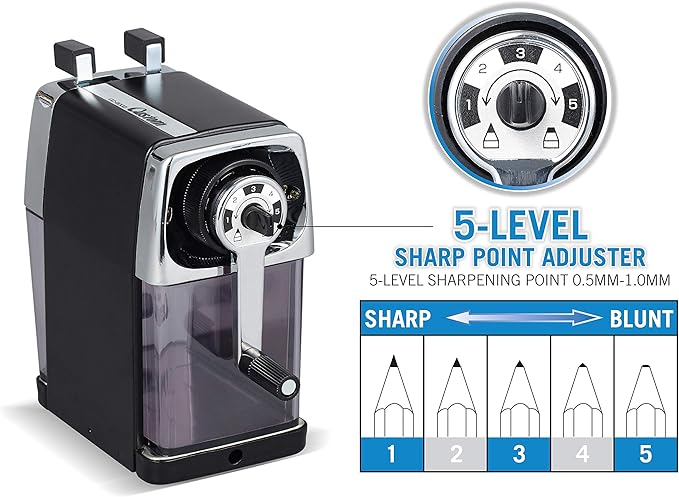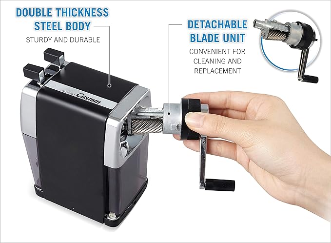 シャープな切れ味を実現した鉛筆削りです。大容量の屑箱なので、学校の教室の共有物としても最適です。
