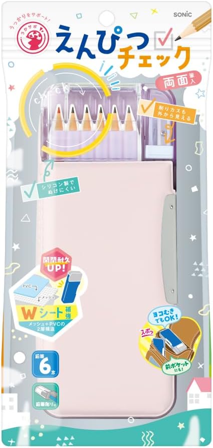 ソニック えんぴつチェック両面筆入 Wシート補強 うかサポ ライトピンク FD-8445-LP