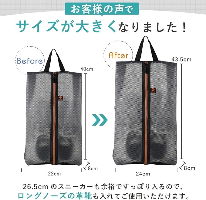 ✅【メッシュの組み込まれたポリエステル素材】 耐久性 と 軽量性 を兼ね揃えた新素材で作られており、軽量であるにもかかわらず靴の匂いを中に閉じ込めしっかりとした作りになっています。