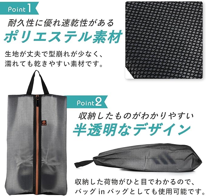 VILAU シューズバッグ シューズケース 半透明 靴入れ 軽量 防水 防臭 スポーツ アウトドア シューズバック 収納バッグ ブラック