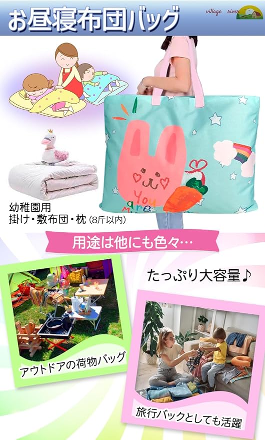 【village river】お昼寝布団バッグ 大容量 保育園 幼稚園 旅行バッグ ネームプレート付き