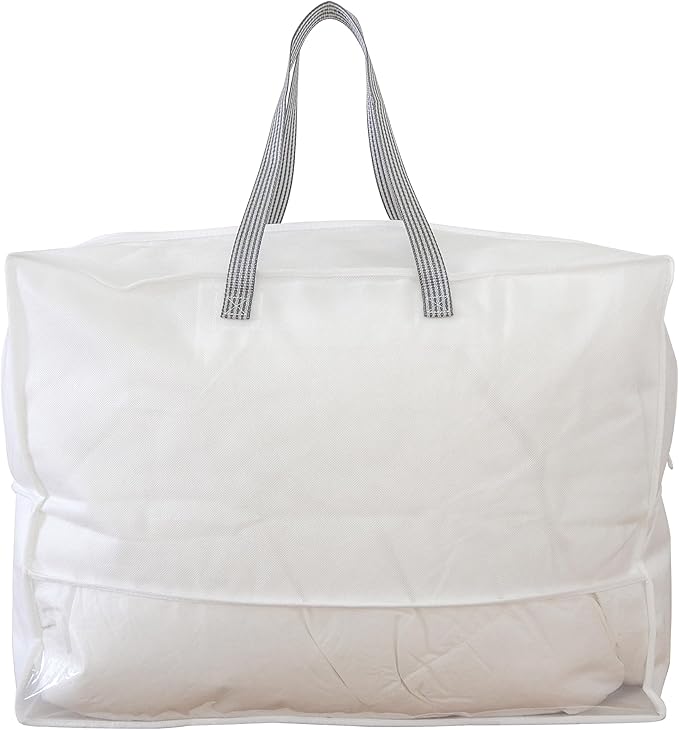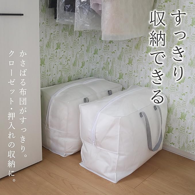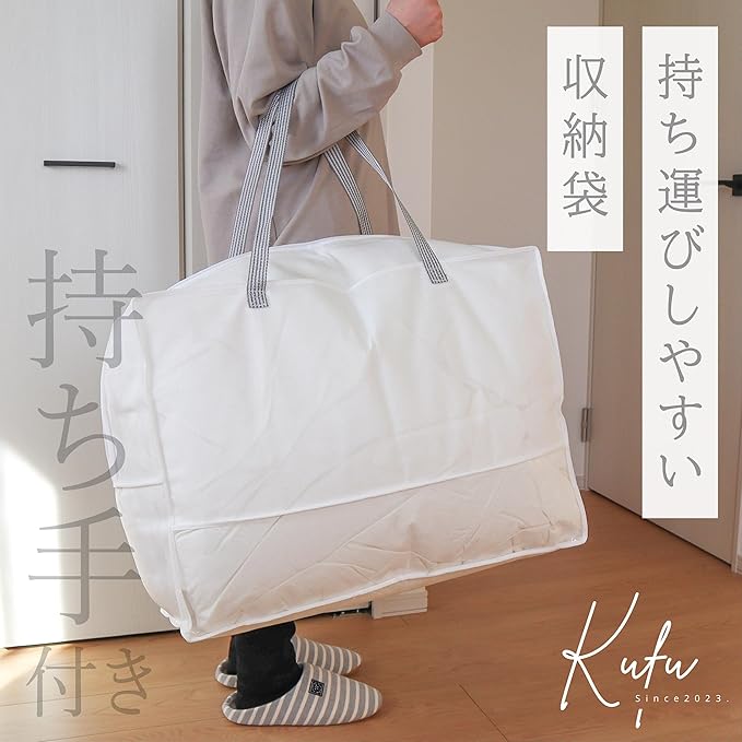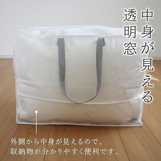 東和産業 布団収納袋 収納袋 Kufu 持ち運びしやすい収納袋 ホワイト 60 30 45cm 羽毛布団 掛け布団用 シングル 保育園 不織布 持ち手付 大容量 透明窓