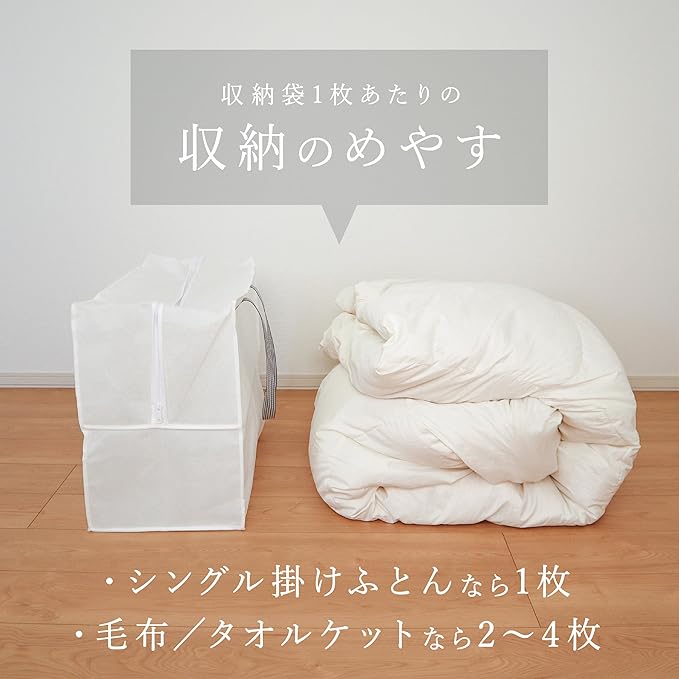 収納目安:シングル掛けふとんなら1枚、毛布・タオルケットなら2~4枚