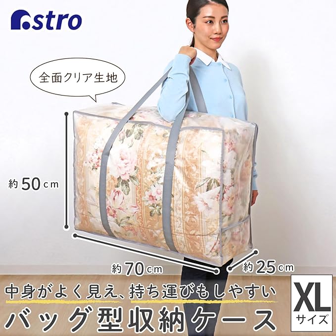 アストロ 収納ケース クリア XLサイズ 収納バッグ 持ち手付き 収納袋 しっかり丈夫 持ち運びしやすい 大容量 羽毛布団収納 布団袋 中身が見える 肩掛けできる 引っ越しバッグ お昼寝バッグ ランドリーバッグ 折りたたみ 112-10