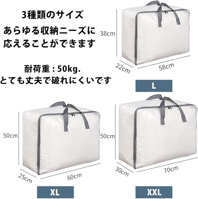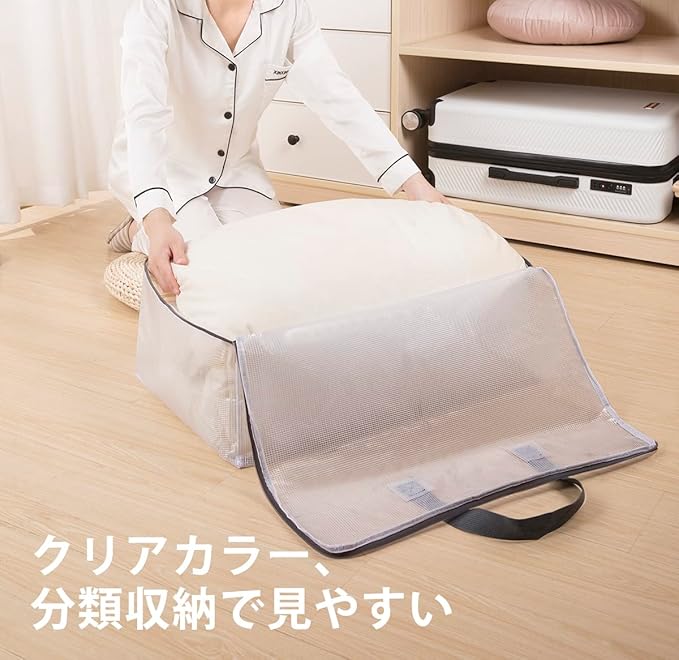 透明ふとん収納袋:防水+折りたたみ可能(非常に省スペース)、上質ファスナー