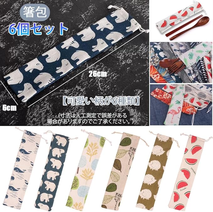 【セット内容】箸包6個セット、サイズ:約26cm 6cm。カラー:混合色(6種類の異なるパターン)。(寸法は人工測定で誤差がある場合がありますのでご了承ください。)