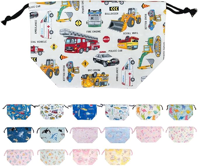 はたらく車(インディゴブルー、オフホワイト)、いろんな電車(ブルー、オフホワイト)、カラフル恐竜(ホワイト、ライトブルー)、水族館(ネイビー、ライトブルー)、ユニコーン(ピンク、サックス)、ユニコーン プチハート(ピンク、オフホワイト)、ユニコーン スイーツ(ピンク、ミントブルー)、ユメカワ(ピンク、イエロー)の16柄 ※セット販売あります 通園通学に最適 お弁当箱が入るサイズ ランチタイムにぴったりの巾着 内側にお名前タグ付き サイズ:タテ18cm ヨコ15.5cm マチ12cm(開口部28cm) ※商品により多少の誤差がございます。 ■素材:綿 ■日本製 ※総柄の生地を使用している為、生地の裁断箇所によって商品一点ごとにパターン(柄)が異なっています。