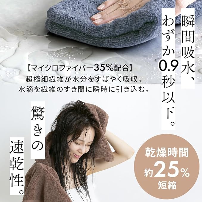 綿とポリエステルを混合させるているから、吸水性を保ちながらも速乾性を実現。