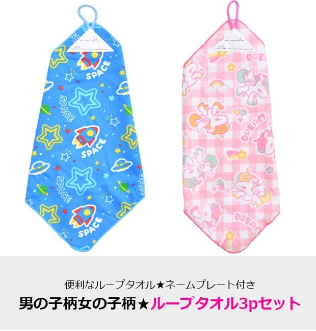 ループタオル タオル 3枚 保育園 幼稚園 小学校 かわいい かっこいい おしゃれ ハンカチ キッズ 子供 幼児 男の子 女の子 こども 名前 ハンドタオル お名前タグ付き ループ付きタオル 3枚セット 30 30 正方形 ユニコーン 車