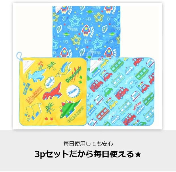 ループタオル タオル 3枚セット 保育園 幼稚園 小学校 ハンカチ キッズ 子供 幼児 男の子 女の子 名前が書ける ハンドタオル お名前タグ付き ループ付き 30 30 正方形 ユニコーン 車 ループタオル3枚セット 【852494】男の子