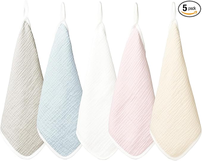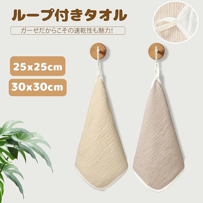 [MOMSMENU] ガーゼハンカチ 赤ちゃん ベビー タオル 綿 柔らかく 名前入 保育園 ループ付きタオル 25x25cm 5枚セット