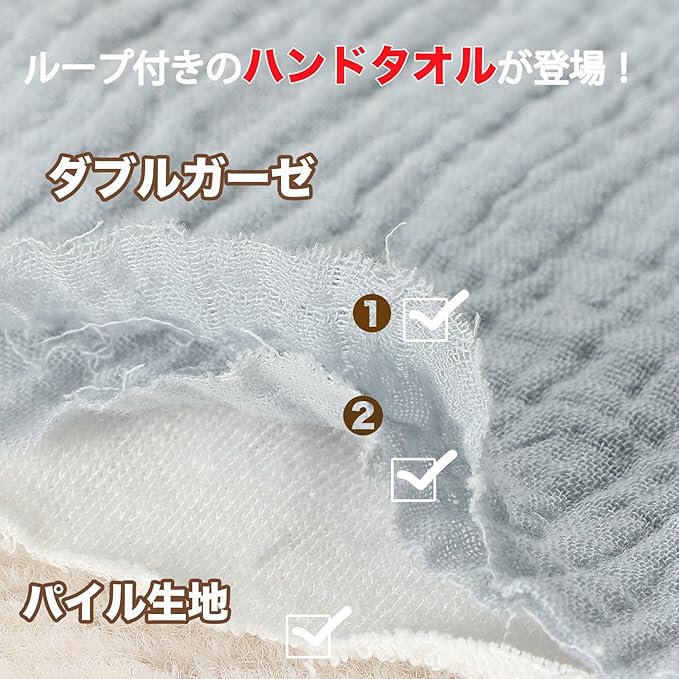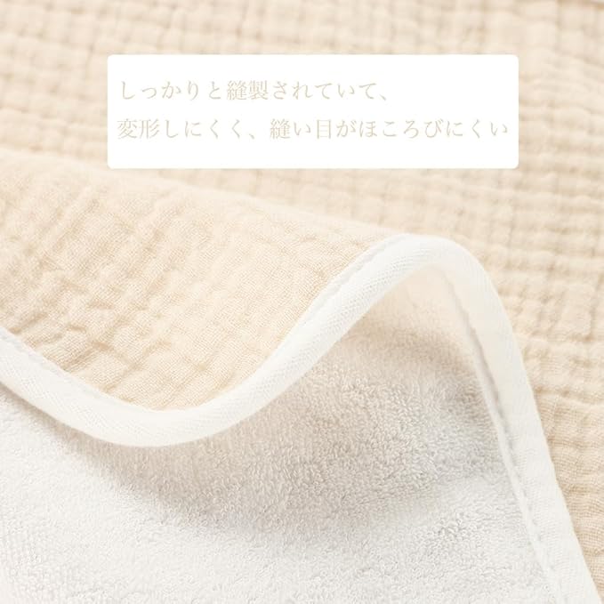 表面は柔らかなガーゼ生地で、肌に優しく、裏面は吸水性に優れたパイル生地を使用しています。