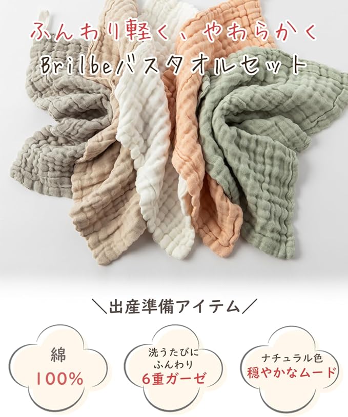 用途:沐浴の時、食事や授乳時、汗拭く、おむつ替えなど色んな場面で使えます。