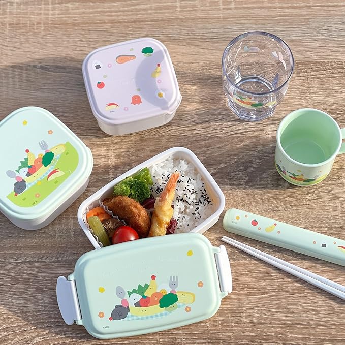 OSK(オーエスケー) つぶらな瞳のお弁当箱 引フタ箸箱セット 16.5cm 日本製 食洗機対応 スライド式 滑り止め加工 抗菌 おしゃれ 可愛い カトラリー 男女兼用 子供用 大人用 学生 HS-11