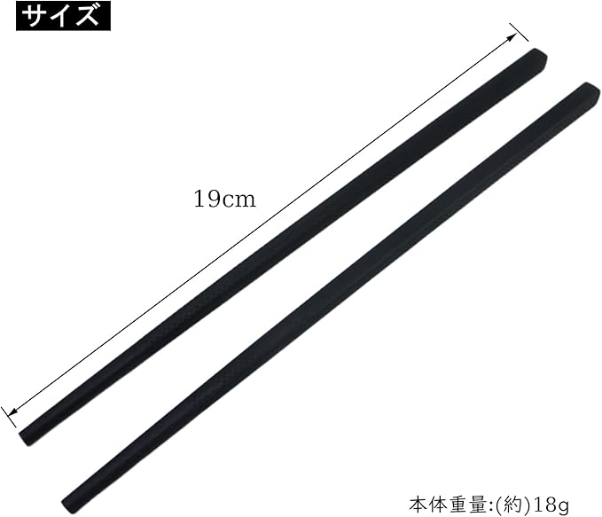 材質:箸/メタクリル樹脂 ケース/PP樹脂 サイズ:箸の長さ/19cm ケース/幅20.5 奥行5.5 高さ2.5cm 本体重量:(約)18g パッケージ重量:(約)58g