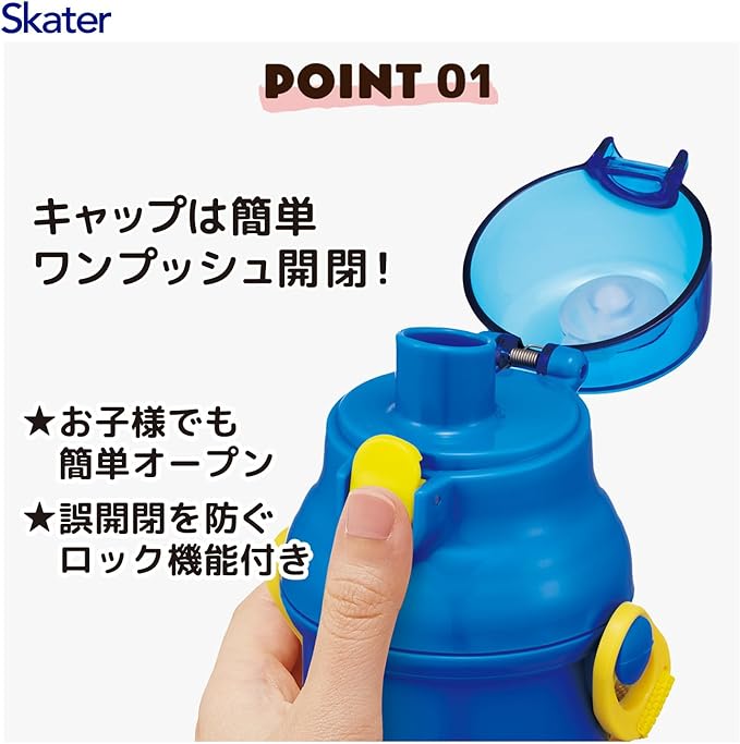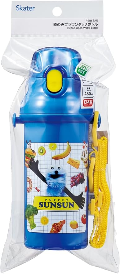 スケーター限定商品子供用 直飲み 水筒 プラスチック 480ml ワンプッシュ開閉 食洗機対応 日本製 パペットスンスン 男の子 女の子 PSB5SAN-A