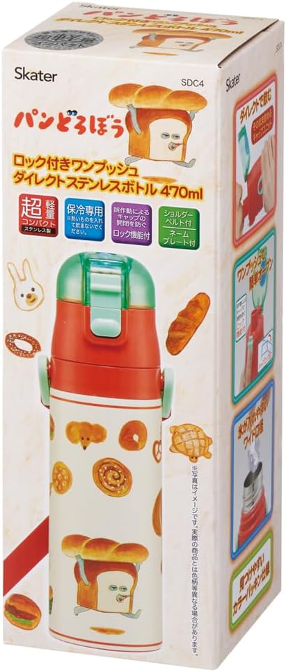 スケーター(Skater) 水筒 子供用 直飲み 470ml パンどろぼう 男の子 女の子 保冷専用 ステンレス 軽量タイプ waterbottle スポーツボトル キッズ こども 水瓶 SDC4-A