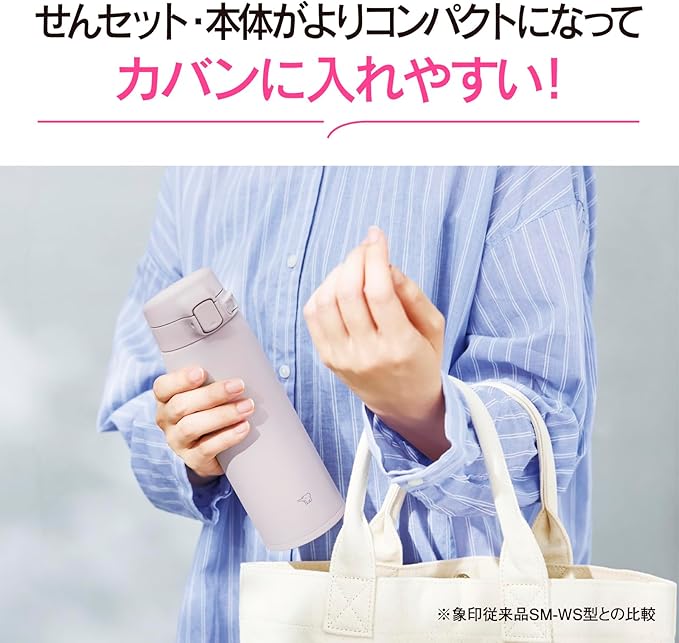 象印 水筒 480ml 【洗いやすく進化】 食洗機対応 シームレスせん 洗う点数2点のみ 軽量&コンパクト 保冷・保温 ワンタッチマグ コクーンホワイト SU-BA48-WM