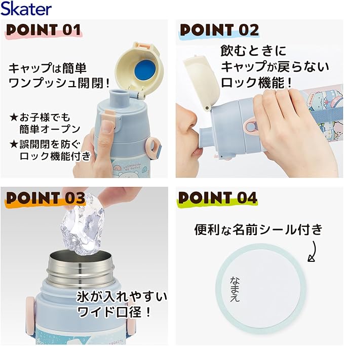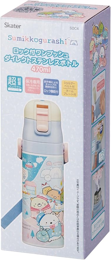 スケーター(Skater) 水筒 子供用 直飲み 470ml すみっコぐらし しろくまふるさと 女の子 保冷専用 ステンレス 軽量タイプ waterbottle スポーツボトル キッズ こども 水瓶 SDC4-A