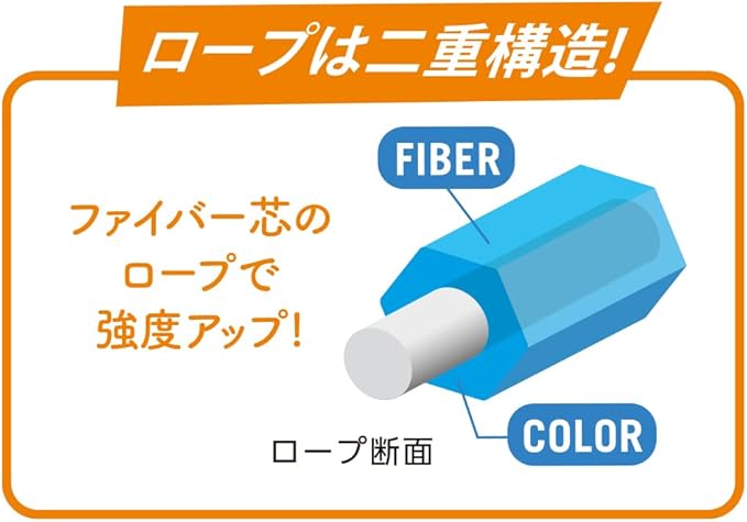 【特長】ファイバー/繊維をうめこんだ二重構造の六角形(Hex)ロープ
