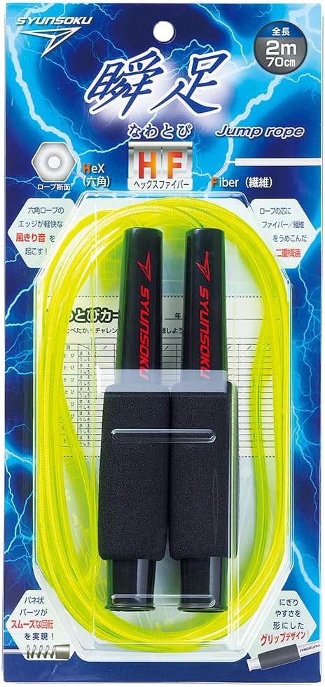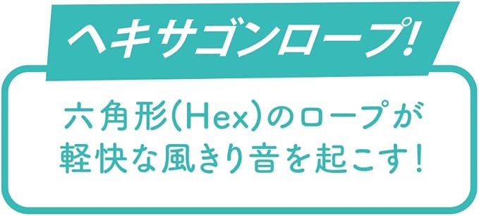 【特長】強度のあるファイバー芯を埋め込んだ六角形(Hex)のロープが軽快な風切り音を起こす機能充実の縄跳び