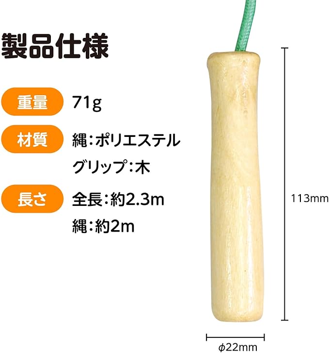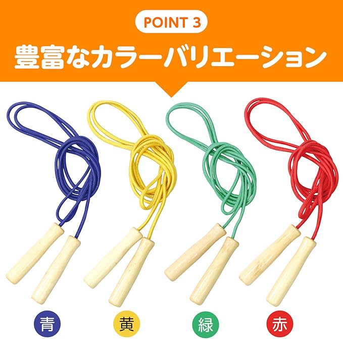 カラーバリエーションが豊富な木柄なわとび!