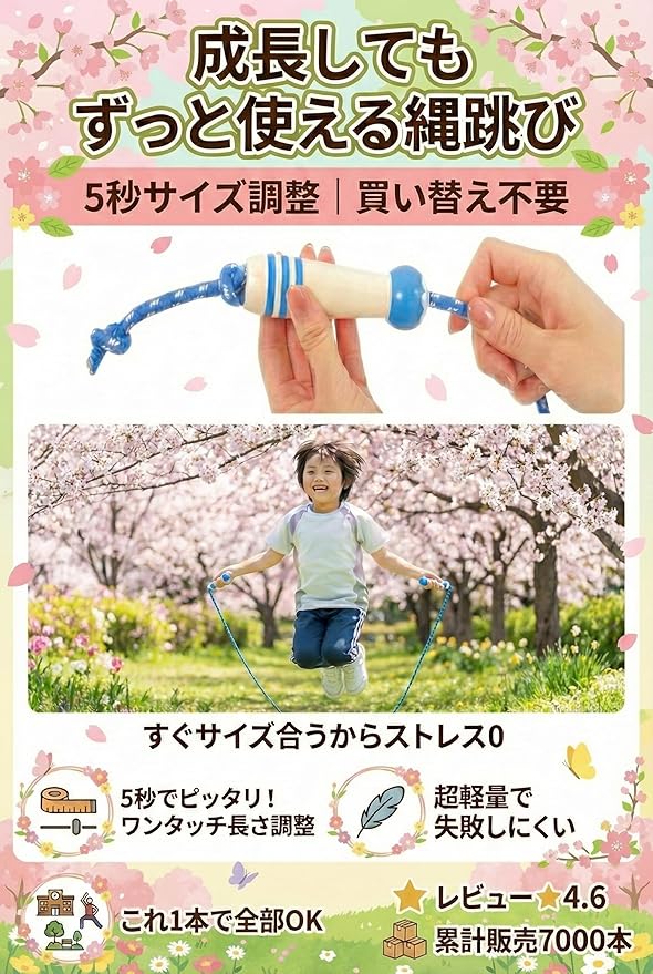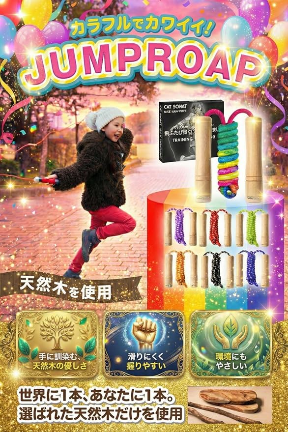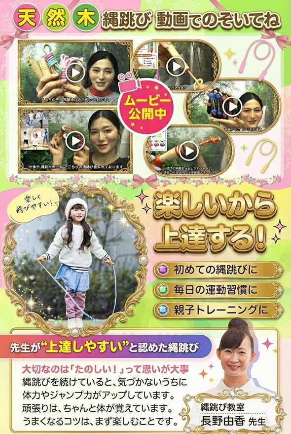 【上質仕上げ天然木デザイン】 縄跳び 子供用 幼児用 小学校 保育園 なわとび教室 ロープ長さ調整可 かわいい木製デザイン【HOT30日保証付き】
