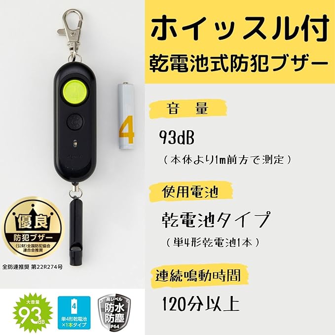 【緊急時の防犯に、ホイッスル付の防犯ブザー】