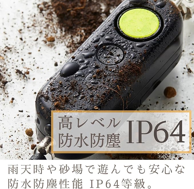 雨天時や砂場で遊んでも安心な防水防塵性能「IP64等級」です。