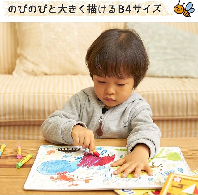 おえかき村のなかまたちが表紙になった、のびのびおえかきができるB4サイズのじゆうがちょう。