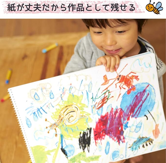 表紙裏面に「にぎり方」「年齢別の画材選び」「おえかきと幼児の携わり方」といったおえかきアドバイス入り。