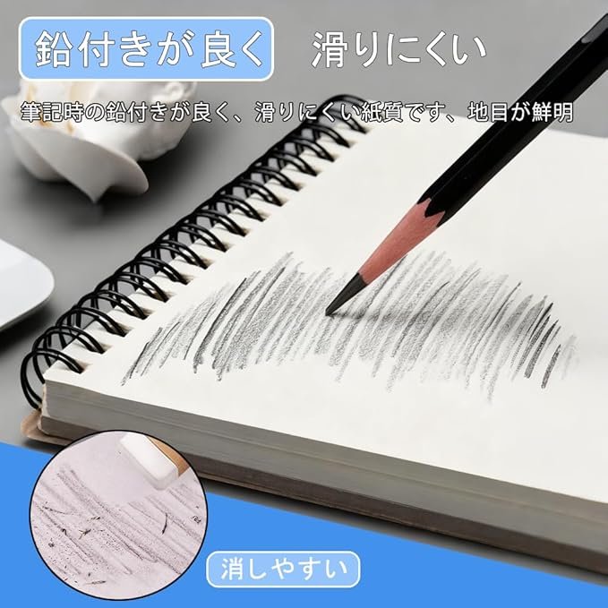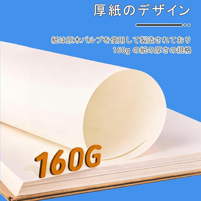 【160gsm 厚口画用紙 丈夫耐用】スケッチ紙は厚みがあり、消しゴムで何度消しても毛羽立ちにくく。線をきれいに消せ、複数の図面に耐えられ、めくりやすいです。