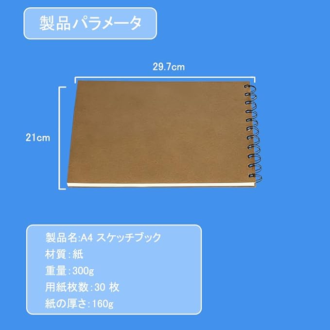 スケッチブック A4 サイズ 厚口画用紙 縦開き 1 冊 30 枚(29cm 21cm) 中性紙素材 油性 水彩色鉛筆対応 大人 子供用 素描 落書き 野外スケッチに適す 学校 旅行携帯可能 画材プレゼントに最適