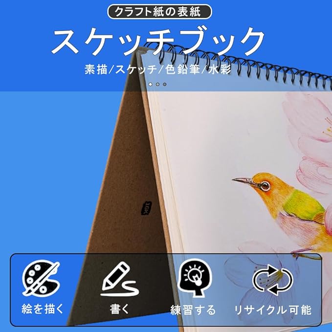 【厚紙カバー 使い勝手良い】硬くしっかりした厚紙カバーで、片手で支えてスケッチしたり、力強く書き込んだりすることに対応可能です。