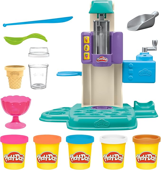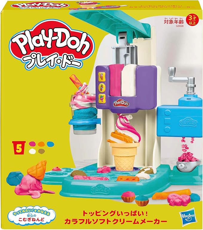 ごっこ遊びが楽しめるカラフルソフトクリームHOT!ソフトクリームHOTに2種類以上のねんどをセットして、コーンやカップを置いてレバーを押すと、カラフルなソフトクリームが作れます。スプリンクルやプレッツェル、フルーツ、キャンディーなどをトッピングしましょう。スプーンやナイフ、スクープ、カップ、コーン、透明カップ、透明カップのふたなどのアクセサリーを使ってソフトクリーム屋さんごっこが楽しめます。つくって、ワクワク、ごっこ遊び!プレイ・ドーはやってみたい!をかなえる安心のこむぎねんど。カラフルな発色とやわらかさが特長で、お子様の成長に大切な発想力や手先の器用さなどの発達を促します。ごっこ遊びが大好きなお子様へのギフトにも最適です。 PLAY-DOH and HASBRO and all related trademarks and logos are trademarks of Hasbro, Inc. (c) 2024 Hasbro. All rights reserved. セット内容:ソフトクリームHOT本体、透明カップ、透明カップのふた、スプーン、ナイフ、スクープ、コーン、カップ、ねんど5個(計284g) 【対象年齢】3才以上 ねんどは小麦を主成分にしています。食べられません。 大人による簡単な組み立てが必要です。 この商品はこむぎねんどです。小麦アレルギーのお子様は、事前に医師にご相談ください。 非毒性です。ASTM規格番号D-4236に準拠しています。 お子様の年齢やスキルによって作品のできかたが異なることがあります。 パッケージの写真・イラストと商品は多少仕様が異なる場合があります。 掃除をするときは、ねんどを乾燥させてから、削り出すか掃除機で吸い取ってください。遊んだあとは必ずねんどを容器に戻し、涼しい場所に保管してください。