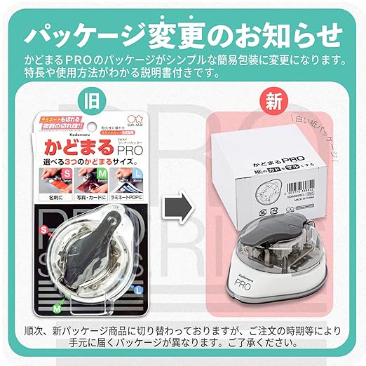 はさんで押すだけでコーナーを丸くカット。ラミネートフィルムの角取りに。半径3・5・8mm、3つの角Rがつくれます。かどまるプロ かどまるくん